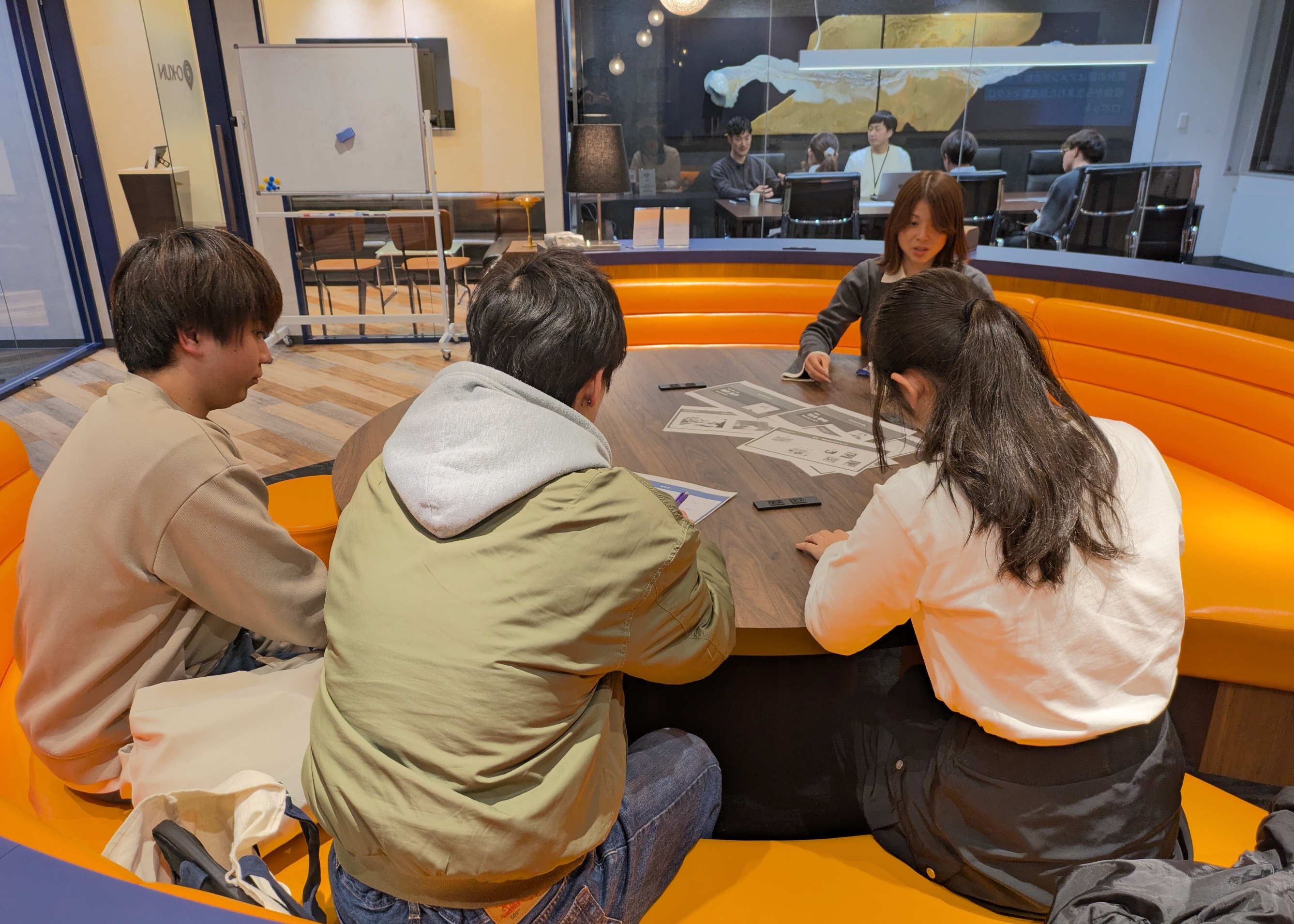 座談会では会議室をすべて使い、学生と社員をできるだけ少人数で分散させました。